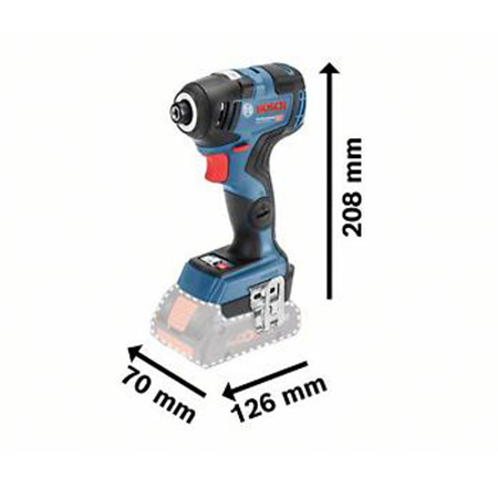 • Ovaj akumulatorski udarni odvijač s motorom bez četkica nudi najbolju kombinaciju snage i veličine u kategoriji Bosch alata od 18 V. S okretnim momentom od 200 Nm i duljinom glave od 126 mm, udarni odvijač ima izvrstan omjer snage i veličine. Za visoku razinu izdržljivosti i dulje vrijeme rada, opremljen je motorom bez četkica s funkcijom EMP (Electronic Motor Protection). Alat je namijenjen za vijke promjera M 6 – M 14 pri obradi drveta i metala. Kompatibilna je sa svim akumulatorima i punjačima Bosch Professional od 18 V (profesionalni sustav 18V)
