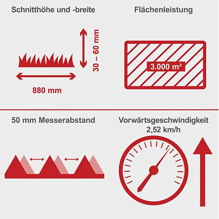 - Brz napredak košenja zahvaljujući izuzetno velikoj širini košenja od 88 cm