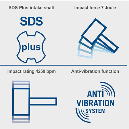 - Jednostavna izmjena alata zahvaljujući SDS-Plus sistemu stezanja